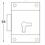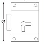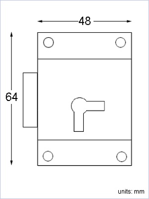 One lever. Size of plate: 64x48mm (2.5×1.7/8 inches). Dist. to pin: 19mm (3/4 inch). 2 keys.