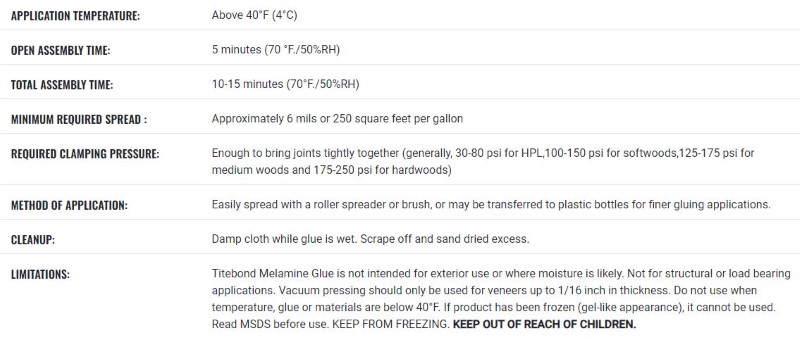 If you need to bond a synthetic material such as melamine, vinyl, Formica etc or even metals to a porous substrate like wood, particleboard or MDF then you need Titebond Melamine Glue.