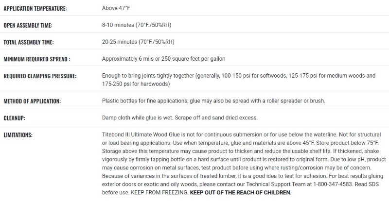 From Franklin of USA, described as an APP (Advanced Proprietary Polymer), Titebond III has been formulated as a dedicated wood glue to give you the ease of application of aliphatic/PVAs and the water resistance of polyurethane glues. Making an exceptionally strong bond on wood-to-wood joints, it has longer open time and higher viscosity than conventional PVAs and will maintain integrity at lower application temperatures. All of which makes for easier and less fraught assembly procedures. Polyurethane glue has undoubted flexibility of use and massive strength but is a very persistent adhesive, difficult to clean up from equipment and particularly hands