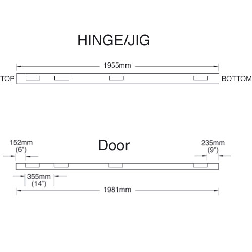 The Hinge Jig is a portable template set designed for recessing hinges in wooden doors & frames. It is easy to use with minimal setting-up time, completing the job both accurately & quickly.Used on-site & in joinery shops to increase productivity with excellent results. Four apertures for fire door requirements. No need for marking out in the conventional way. Quick & simple to set-up as the hinge is used as the pattern.Clean & accurate recesses are achieved every time. Suitable for timber based doors & square butt hinges. Use with a light duty router with 1/4 inch collet.Long reach router cutter required, 12mm diameter with 70mm overall length.Angled position slots to prevent creep.Unibase may be needed.Patent No. GB2285410.T4EK router requires a ref. UNIBASE or special guide bush ref. GB/T4/160. Hinge sizes possible Length min.=2 5/8 (67 mm) Length max.=5 (127 mm) Width min.=3/8 (9.5 mm) Width max.=1 3/8 (35 mm) Door sizes possible Height min.=6 5 (1955 mm) Height max.=6 10 (2100 mm) Thickness min.=5/8 (16 mm). Includes 4 x Apertures|2 x Bradawls with spacer|1 x 16mm guide bush|1 x T-Handle hex key|1 x 4mm spacing gauge|1 x Plastic storage tube.