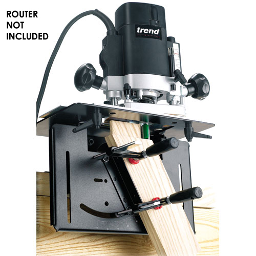 Enables mortise & tenons and dowel joints to be cut with a router. Ideal for cabinet, chair and table. CNC precision manufactured plates and body.One set-up for both mortise and tenon giving perfectly fitting joints. Fully adjustable for compound angle joints up to 45 degree. Reversible templates to produce round and square end tenons. Templates can be used for accurate dowelling applications. Cuts mortise & tenon sizes of 1/4 inch (6.35mm) to 5/8 inch (15.9mm). Guide bushes are included but cutters are required. A Unibase may be required for certain makes & models of router. All tenons are cut with a 5/8 inch diameter straight cutter (Ref. C026). The width of the tenon is adjusted by using different guide bush diameters. Material thickness min.=12 mm Material thickness max.=47 mm Tenon thickness min.=4.8 mm Tenon thickness max.=16 mm Tenon length max. using vertical guide+=90 mm Mortise length max. using vertical guide++=90 mm Angle tilt compound=-10 degree to 45 degrees + on end of 100 mm wide material. ++unlimited if vertical guide removed and wood repositioned.. Includes 5 x Guide bushes|4 x Clamps|1 x Guide bush collar|1 x Set-up Bar.