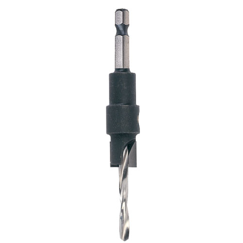 Counterbore with a slow spiral drill fitted. Tungsten Carbide Tipped for use in abrasive materials. D=5/32 inch D=4 mm D2=3/8 inch D2=9.5 mm Shank Diameter=1/4 inch hex