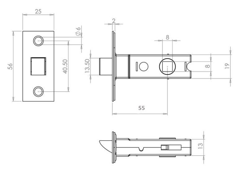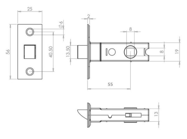 TUBULAR LATCH 76mm B/THROUGH FIX EB