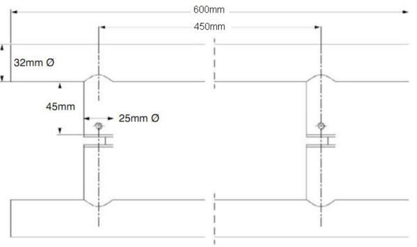 Size: 600 x 32mm.(Fixing centres 450mm