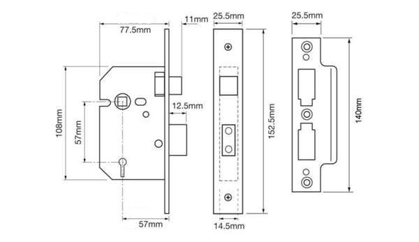 Union Sash lock for timber doors hinged on left or right, to suit doors up to 54mm thick. Specification Deadbolt locked or unlocked by key from either side Latch bolt withdrawn by lever handle from either side.