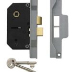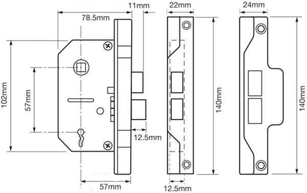 Deadbolt locked or unlocked by key from either side. Latchbolt withdrawn by lever handle from either side. Keys suitable for doors upto 55mm thick when using 8mm thick furniture plates.