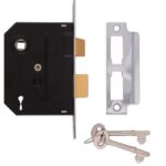 Two way action suitable for lightway knobs or sprung handles. Deadbolt locked or unlocked by key from either side. Latchbolt withdrawn by lever handle from either side. Keys suitable for doors upto 55mm thick when using 8mm thick furniture plates.