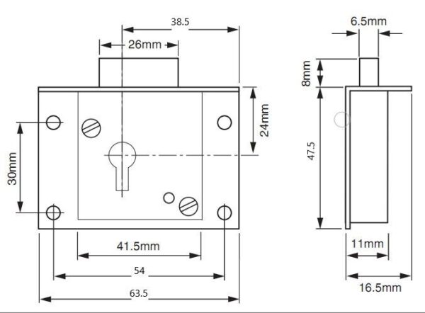 Drawer Lock Cut 4 Lever 63mm Brass.