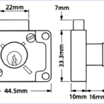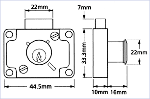 For wood doors or drawers. 4 pin tumbler mechanism. Cylinder rotates to produce either a drawer lock or a right or left hand cupboard lock. To suit doors or drawers up to 12.5mm max material thickness. The bolt is unlocked by the key.