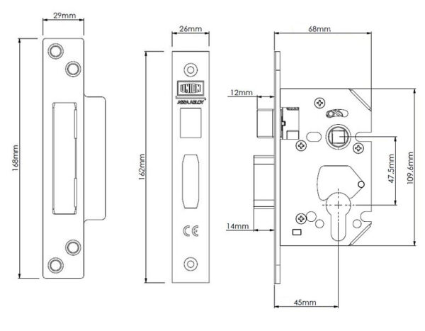 The StrongBOLT euro-profile sashlock features a chamfered bolt design which increases the performance of the lock under side load as well as making a drilling attack more difficult. On top of the chamfered bolt design the sashlock is anti-pick, anti-saw and anti-drill. It features radius inner forends for ease of first fit installation or simple retro fit replacement, it can be installed into many UK mortices without the need for additional carpentry or spoiling the edge of the door. It is suitable for timber doors up to 54mm thick and can be hinged on the left or right and is supplied with radius plastic splinter guard and anti rattle strike. For use with unsprung lever handles. Tested to BS 3621:2007, EN 1634-1 assesed for use on 60 minutes timber fire doors and secured by design accrediation.