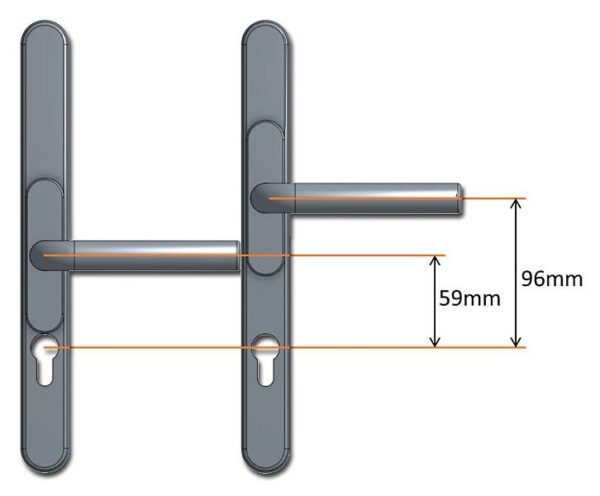 Adaptable vertical handle position to suit lock centres between 59-96mm