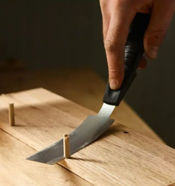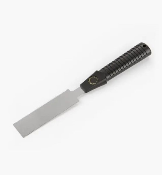 Traditionally used for the rapid trimming of plugs and dowels flush with a surface, this flush-cutting saw can be used where you want to cut off a projection without damaging the surrounding or adjoining face. This is possible because the teeth are set one way only. The 22 tpi Japanese tooth-pattern blade cuts aggressively (on the pull stroke), but does not mark the surface that it is cutting next to. The thin blade is flexible and can be pressed flush to any surface, yet is rigid enough for good control. Overall length is 290mm with 120mm of blade. Double edged.