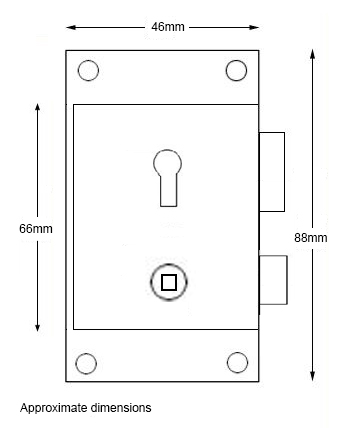 Cut wardrobe lock. 3.1/2in (88mm). For 5mm (3/16in) spindle. Right hand. 2 keys.