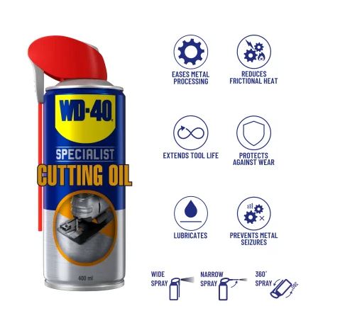 WD-40 Specialist® Cutting Oil provides critical lubrication and protection in metalworking to maximise the life of cutting and drilling equipment, while also improving the overall machined finish. WD-40 Specialist multi-purpose Cutting Oil has a mineral, oil-based formula with anti-wear additives and a unique liquid-foam consistency to help reduce tip welding and wear on tools. It prevents pitting and metal seizures and quickly disperses the heat caused by cutting, drilling, tapping or fabricating metal, so your tools and machinery keep running for longer.