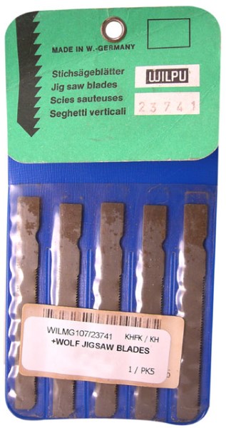 HSS, wavy set teeth. Extremely thin sheet metals from 0.5 to 1.2mm. Suitable for Wolf. Pack of 5 blades. Made in Germany.