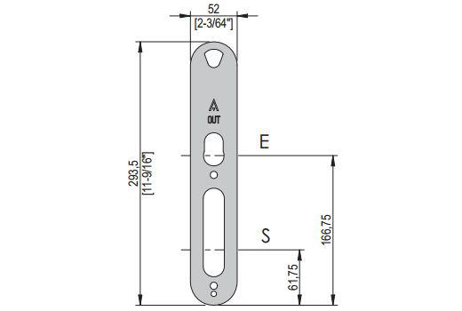 Lock-Tech cover plate. Plate to sit behind Salto to hide marks from previous door furniture etc. 52mm wide. Satin stainless steel finish.