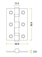 Steel Ball Bearing Butt Hinge. 76 x 50 x 2mm.